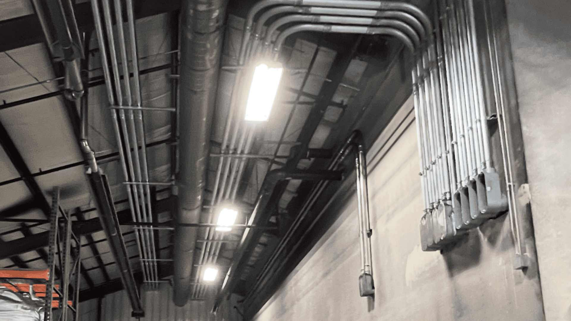 - High-voltage lighting (277V), time clocks.